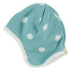 Organic Blue bonnet hat with spot print on one side and stripes on the reverse.Age: 6-12 MonthsSize Guide: 43-45 cm