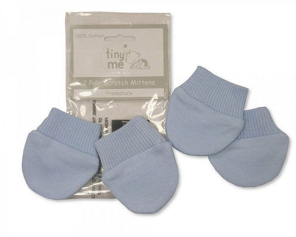 Premature Baby Scratch Mittens, Blue in packs of two pairs Material: 100% Cotton Machine Washable